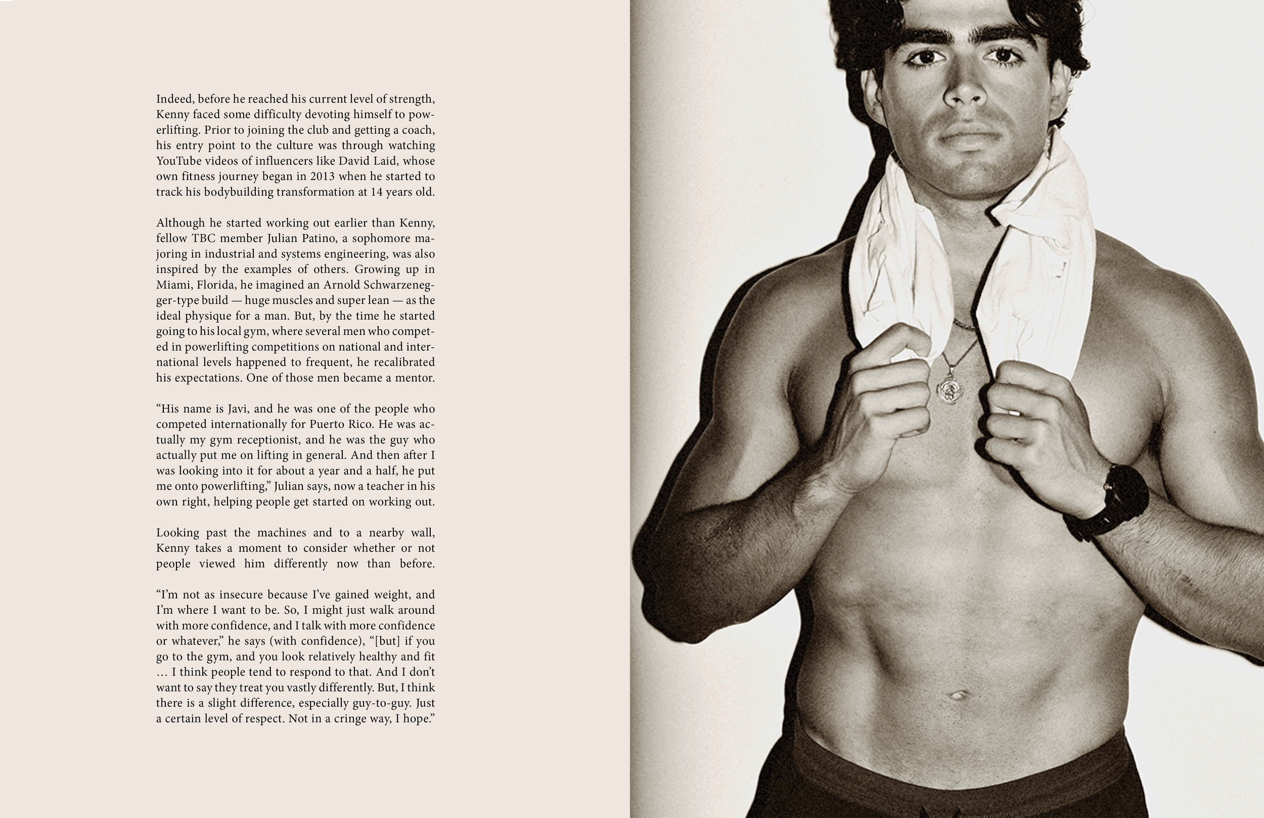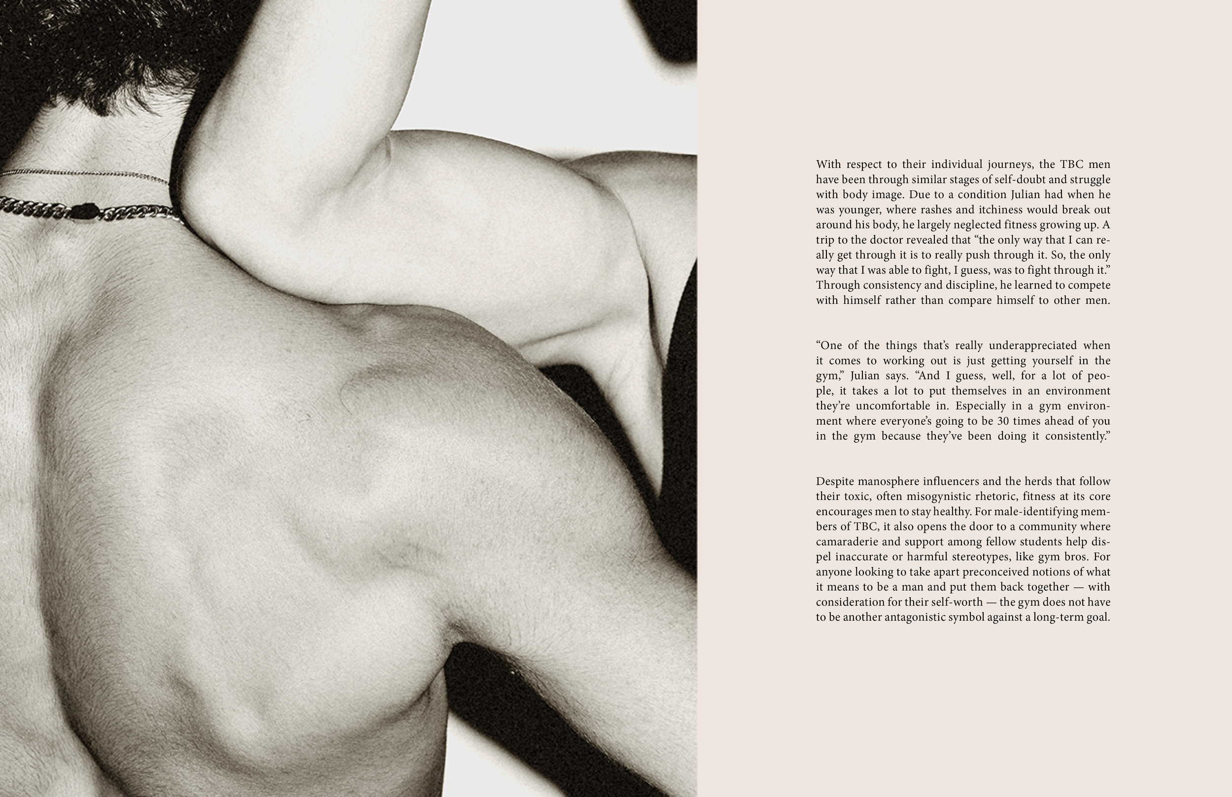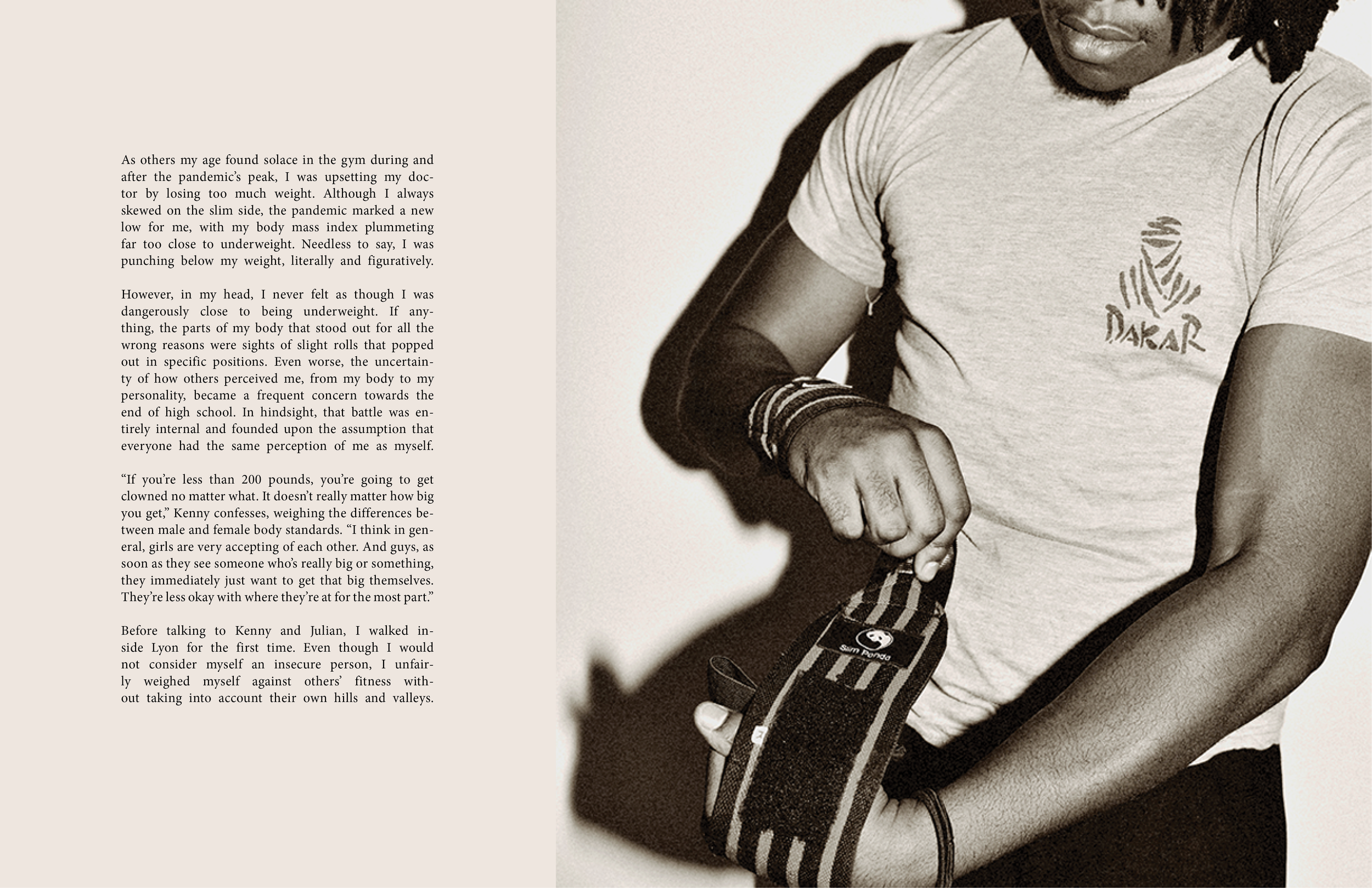 Designed for SCene Magazine’s minimalism-themed issue, Beefcakes, Barbells, and Body Standards is an editorial spread exploring discipline, restraint, and visual clarity. For this project, I designed the layout system and typographic treatment using a strict black-and-white palette, incorporating subtle texture and bold type to add emotional depth while maintaining a clean, minimalist structure.