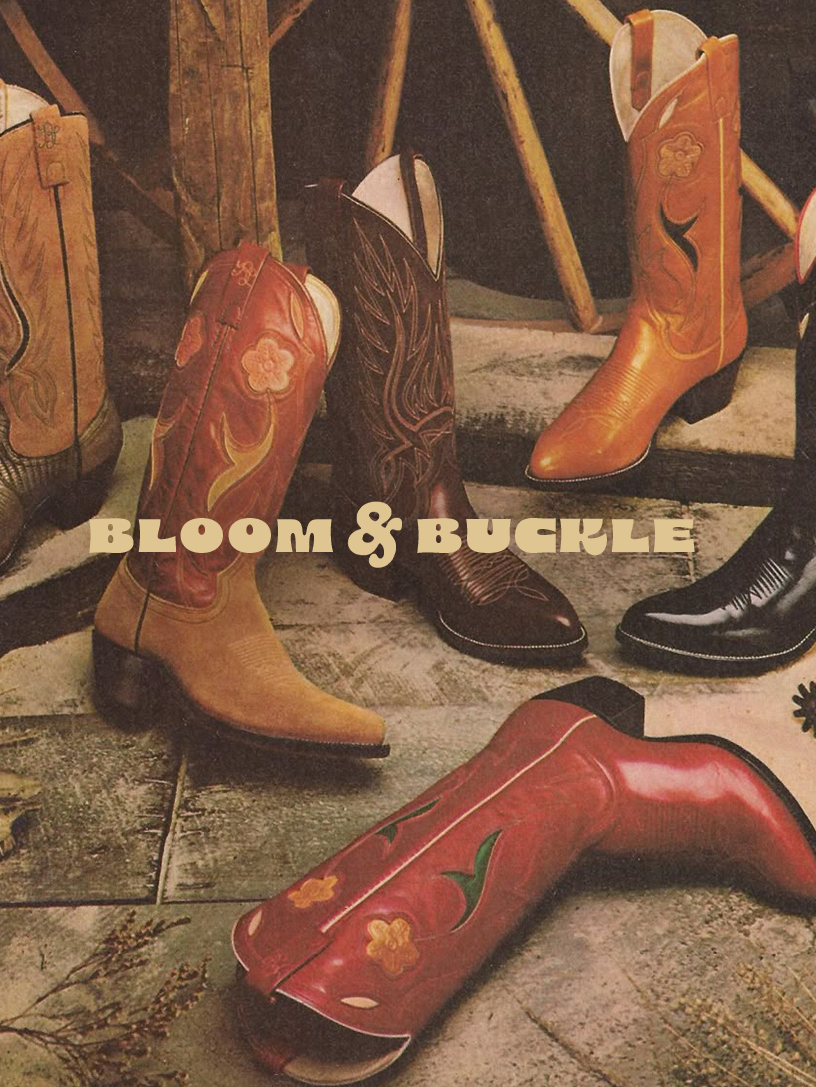 Bloom & Buckle is a conceptual footwear brand that reinterprets Western aesthetics through a feminine and contemporary perspective. Combining natural textures, warm tones, and expressive styling, the project explores identity and the balance between structure and softness within fashion branding.