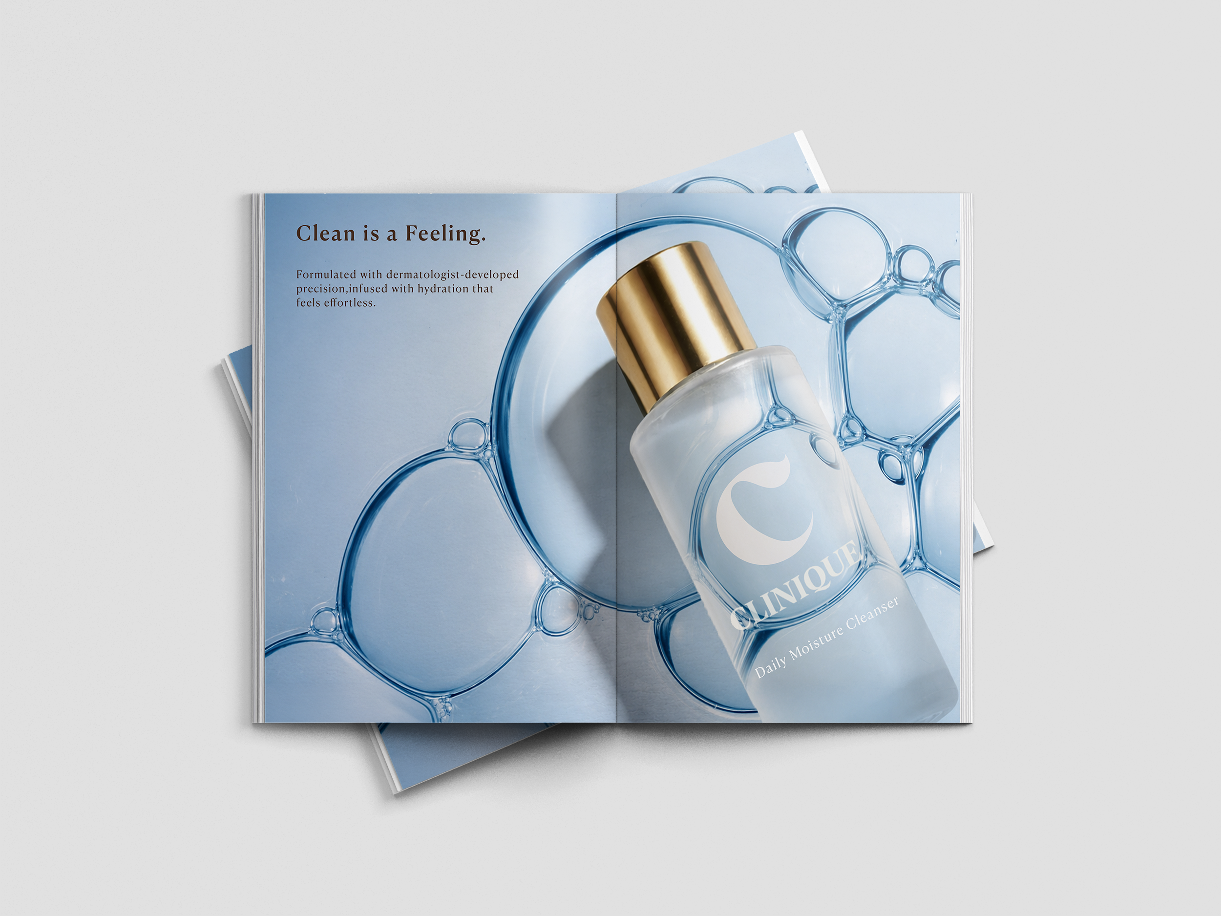 For my Clinique rebrand, I focused on preserving the brand’s dermatological credibility and science-first foundation while introducing a sense of warmth and emotional connection. I explored how materiality, color, and tone could soften the clinical aesthetic without compromising trust or performance. The result is a system that feels elevated and human, balancing proven skincare authority with a more inviting, sensorial experience.